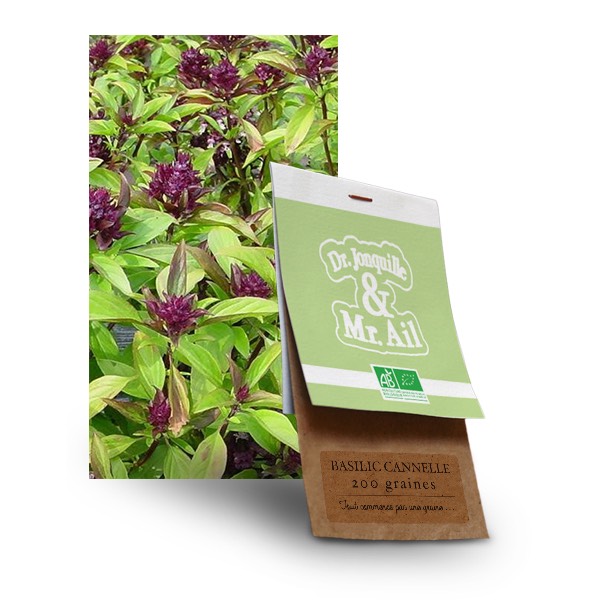 Sa tige et ses feuilles sont de couleur violâtre. Pourquoi l’appelle-ton “Basilic Cannelle” ? Parce qu’il émet un parfum de basilic et de cannelle. Simple. Basilic. Basilic. Simple.
