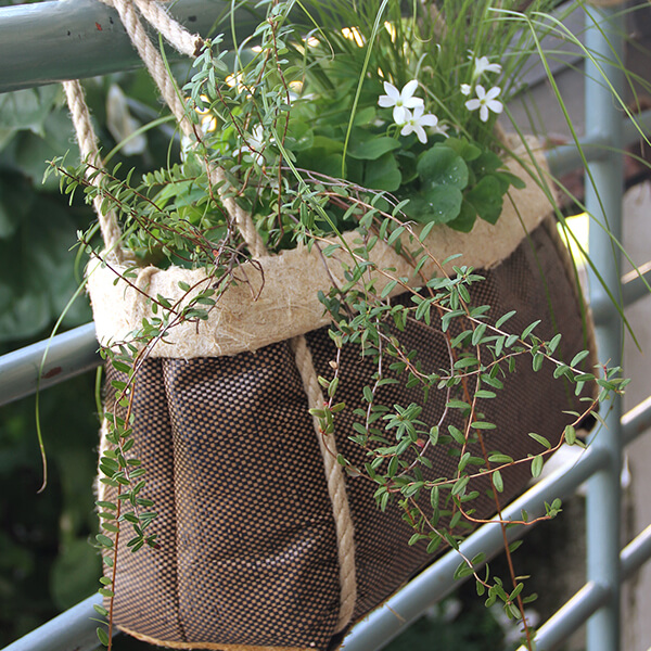 Découvrez la première jardinière de balcon 100% écologique ! Produit dans l’ouest de la France cette balconnière certifiée ok compost est composée d’une couche en chanvre et deux couches de bioplastique obtenu à partir d’amidon de maïs. Le résultat : une jardinière élégante, résistante aux intempéries et aux rayons du soleil, permettant à l’eau de s’écouler, à la terre de respirer et à vos plantes de prospérer !